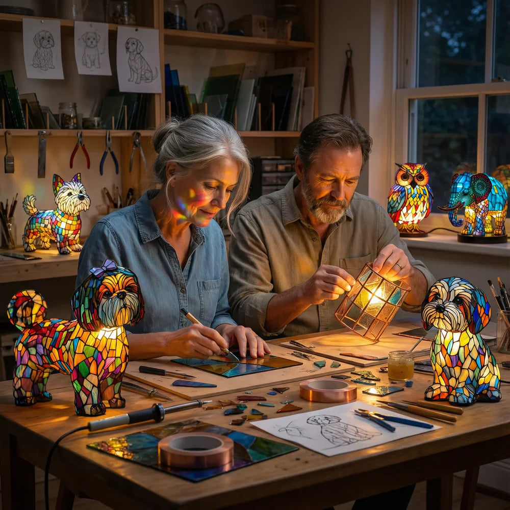 Crafted from fine stained glass and shaped by hand, our lamps bring the character and glow of timeless artistry into your home, no gallery ticket required.